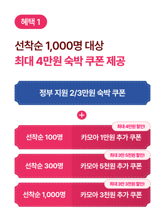 - 선착순 1,000명 대상 최대 4만 원 숙박 쿠폰 제공