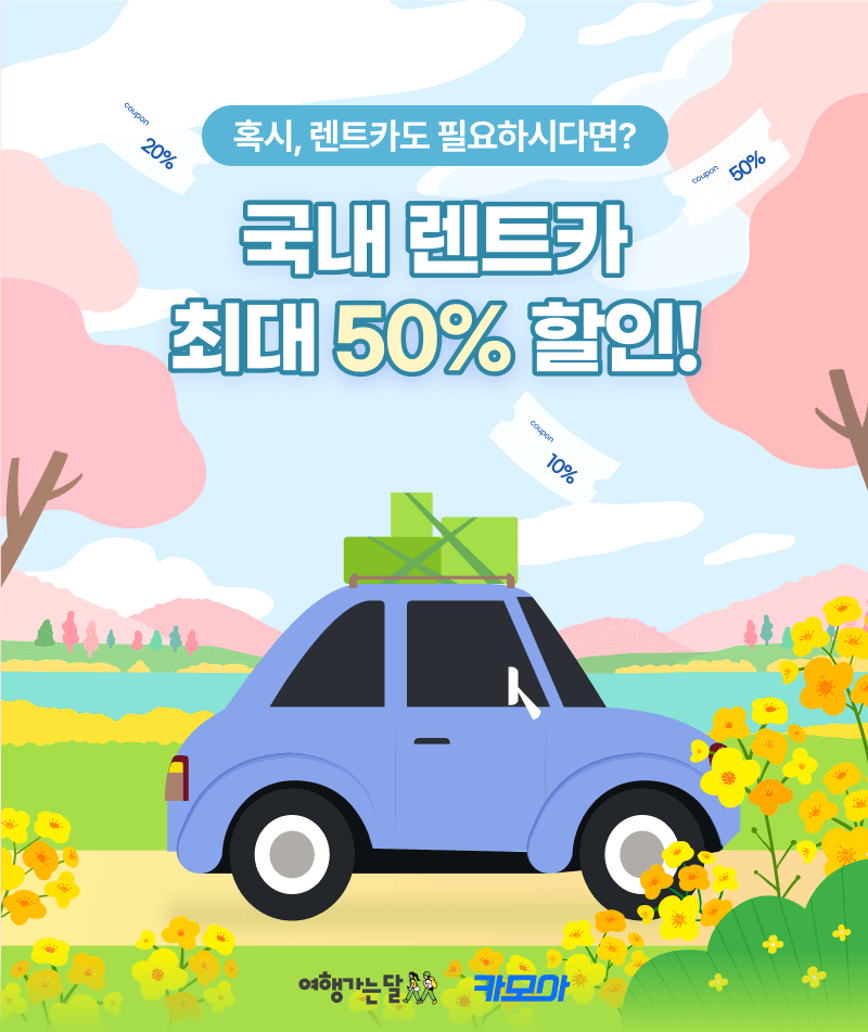 - 국내 렌터카 최대 50% 할인 쿠폰 제공